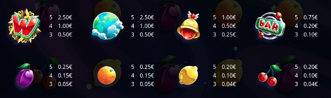ลุ้นรับเงินรางวัลตอบแทน จาก สัญลักษณ์ที่สร้างขึ้นมาจากเกมนี้ ดยแต่ละสัญลักษณ์ เป็นผลไม้คลาสสิก ที่จะสร้างรายได้ให้คุณแบบไม่อั้น ผู้เข้าเล่นมือใหม่และมืออาชีพ ร่วมสัมผัสความร่ำรวยไปกับเราได้ตลอดเวลา และลุ้นรับเงินจากสูงลงไปต่ำ สมัคร SLOTXO และลุ้นรับเงินรางวัลตอบแทน ด้วยการเรียงตัวกันสามตัวขึ้นไป จากซายือไปขวามือได้เลย ที่นี่