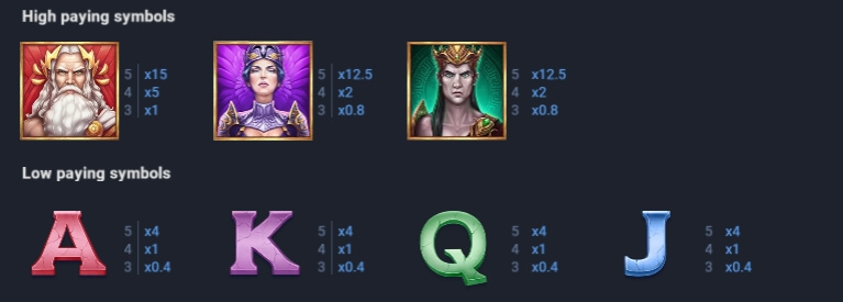 สัญลักษณ์ทุกตัวจากเกมนี้ มีอัตราการการจ่ายไม่เท่ากัน มีทั้งระดับการจ่ายสูง ปานกลาง และต่ำ โดยมันจะเรียงตามลำดับ จากต่ำไปสูง ซึ่งค่ายเกม EVOPLAY ได้เรียงตามลำดับ ดังต่อไปนี้