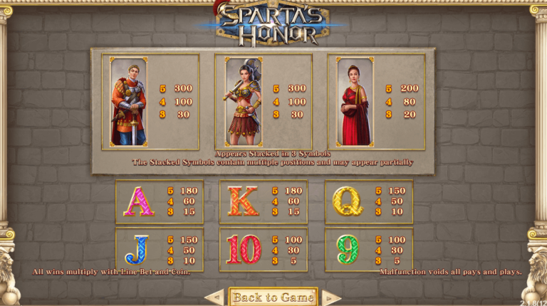 สำหรับเกม Sparta’s Honor ก็มีอัตราการจ่ายเงินรางวัล ดังนี้