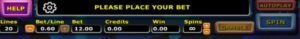 LINES : ในช่องนี้จะเอาไว้โชว์ไลน์ที่นักเดิมพันใช้ในเกมปัจจุบัน