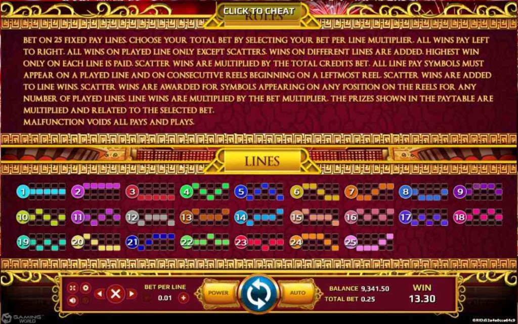 - หากปรากฏสัญลักษณ์ ซองแดง โผล่ขึ้นมาตั้งแต่ 3-5 ช่อง จะได้โบนัสสูงสุด 180x