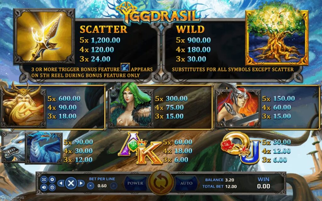 รูปแบบแจ็คพอตเกมและกติการการเอาชนะในเกม Yggdrasil : อิก ดรา ซิล